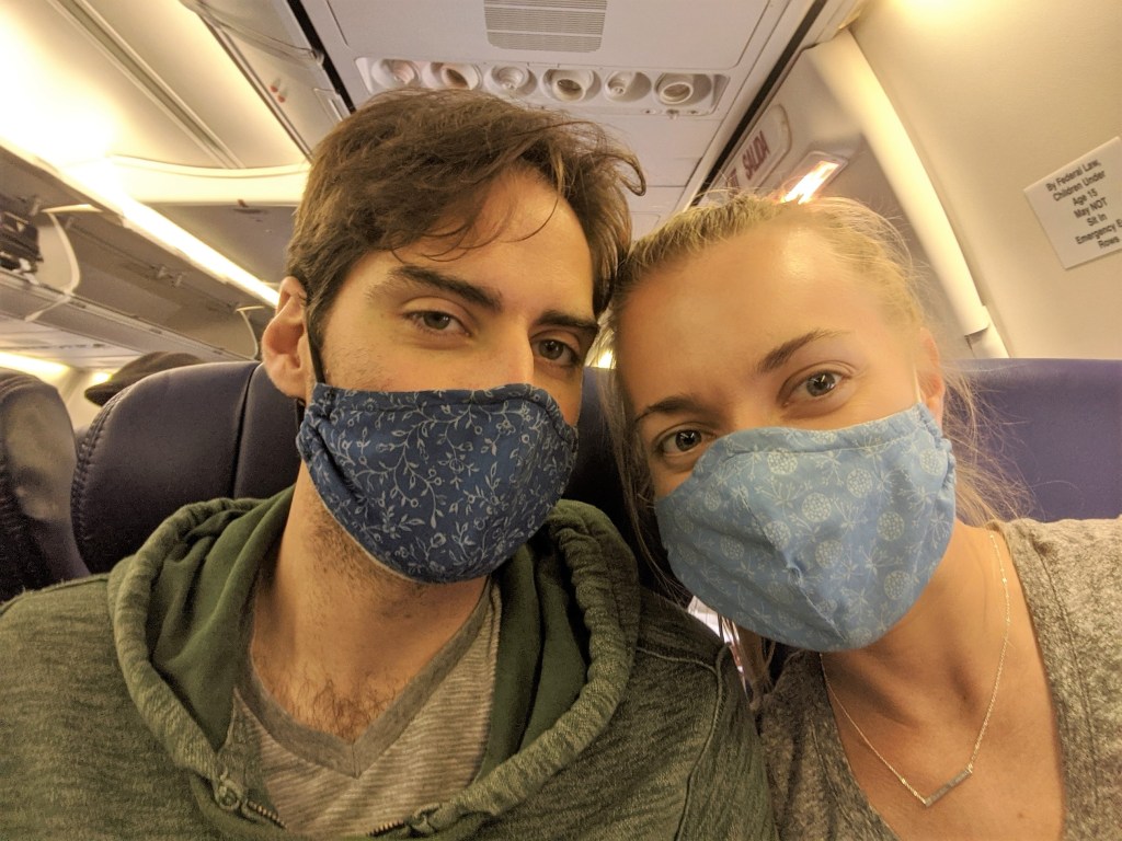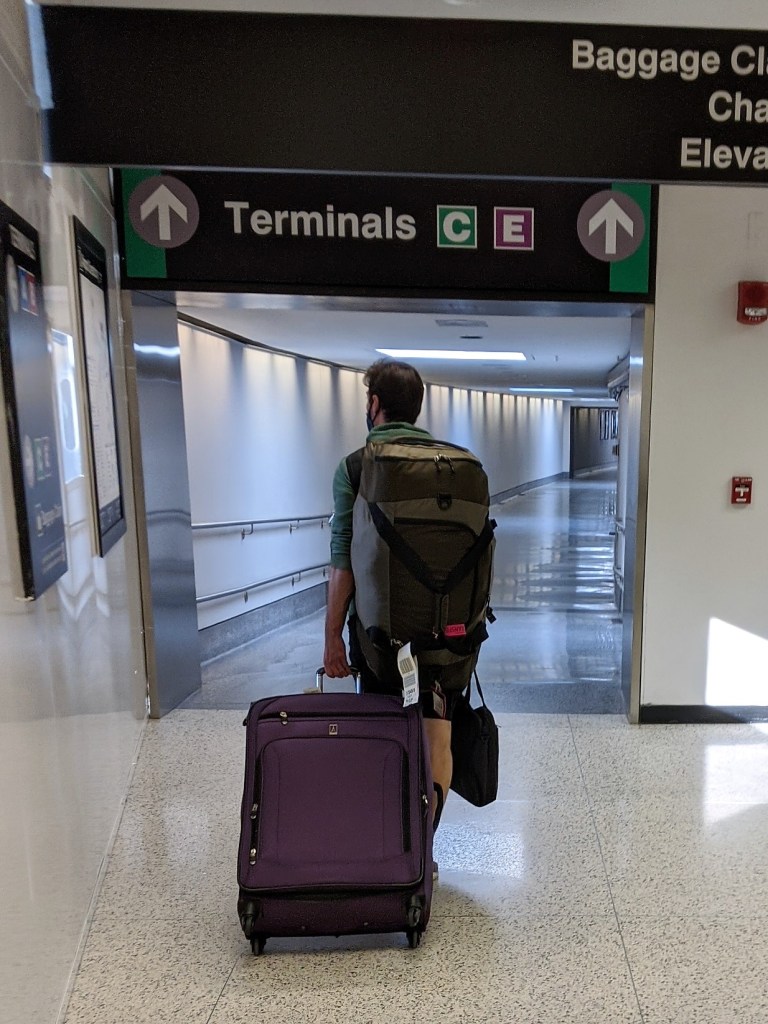 Getting 125 lbs of luggage each from one end of the airport to the other while wearing masks….. we definitely got our workout in for the day!