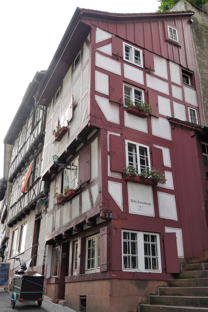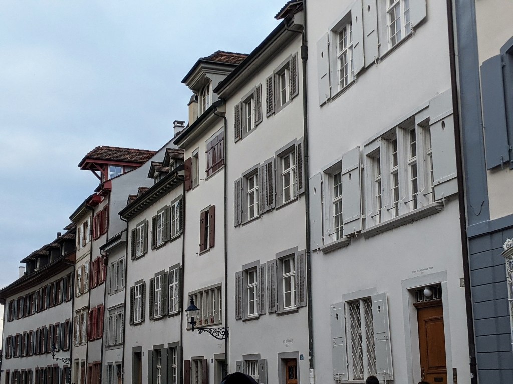 The cobblestone alleyways and passages of Basel were the most fun to wander through. We marveled at the dates displayed on many homes indicating that the buildings were built in the 1300s and 1400s. The popular combination of red trim and green shutters on many homes throughout Basel added to the abundance of Christmas wonderfulness.