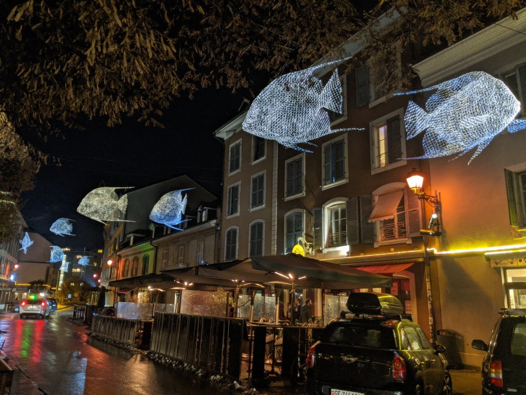 I call this one “The Twelve Fish of Christmas” in the neighborhood of Carouge in Geneva.