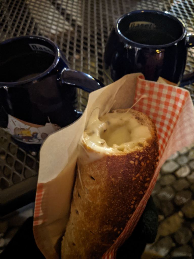 Geneva has its own beautiful Marché de Noël on the lake. While the artisan shops were fun to walk around, the real magic of Geneva’s market was the food. In addition to the Swiss winter staples of raclette and fondue, there was food, beverage, and sweet representation from all over the world. In one evening, we had Argentinian choripán (sandwich with Argentinian sausage), Portuguese bifana (another delicious sandwich situation) and chorizo-stuffed bread, and Greek loukoumades (basically donuts, yum!). And, of course, the most important Christmas market staple—now called vin chaud, since we are back in French-speaking Switzerland—is critical for keeping hands and insides warm in the chilly weather and should be consumed on a continual basis for maximum benefit.