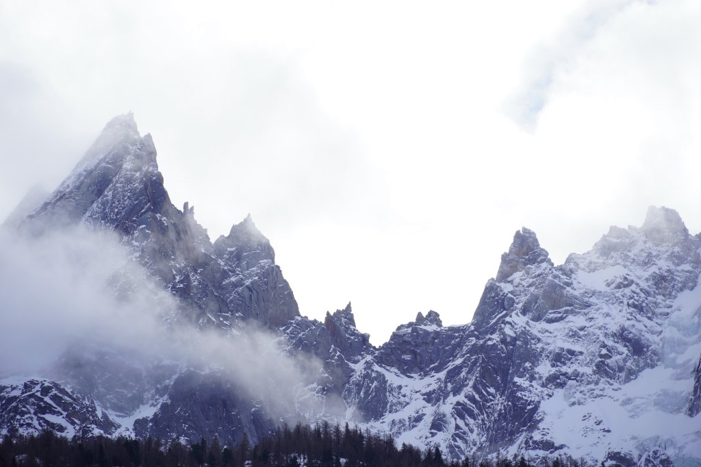 The jagged (so jagged!) peaks surrounding the Chamonix valley played peek-a-boo from behind the clouds but made for some epic and mysterious mountain photo opportunities.