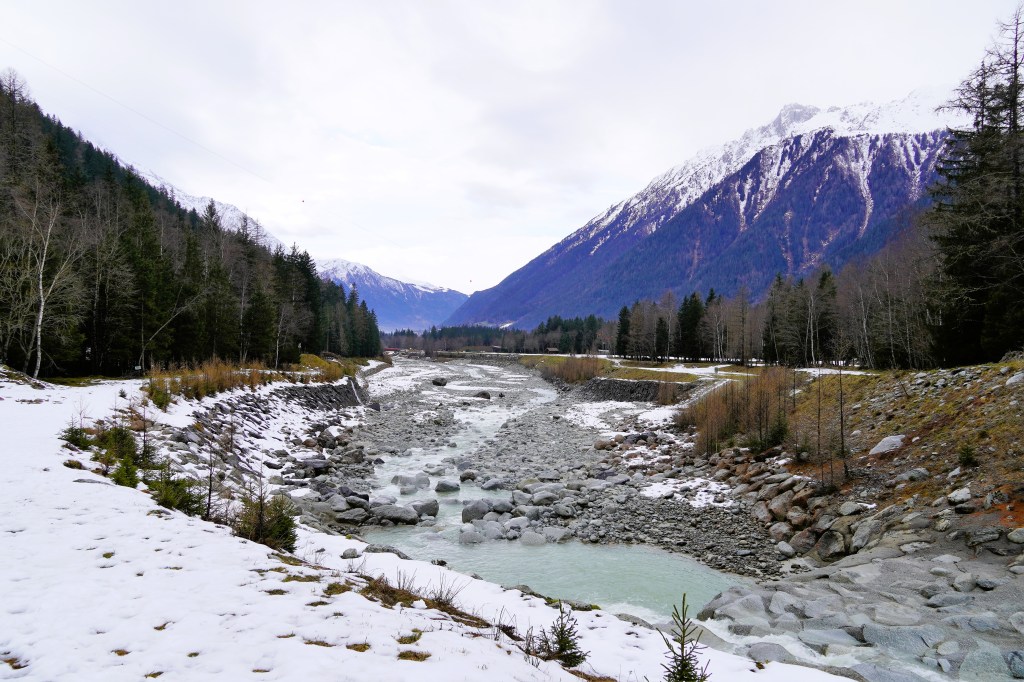 After a great breakfast in the town of Chamonix, we headed out for some hiking. With the startling lack of snow in Europe this winter that I’m sure you’ve read about in the news, it felt more like an early-spring hike than a dead-of-winter hike.