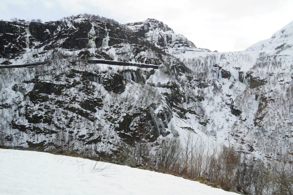 Re-entering wintertime on the route from Bergen to Gudvangen.