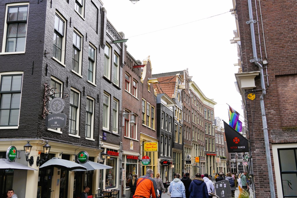 The buildings got older and quainter as we neared the center of the circular-shaped city until we reached the historic and notorious De Wallen district, known to the hordes of tourists as the Red-Light District. The historic architecture and canals are so quaint and harken back to when sailors would frequent this harborside neighborhood during the Dutch seafaring days. Many of the buildings were built in the 16th and 17th centuries when Amsterdam was at the height of its status as a global trading center and the best way to transport goods was via canal. If the buildings look slightly topsy-turvy, your eyes are not deceiving you; this is what happens when a centuries-old city was built on thousands of wood pilings dug into marshy soil. In addition, skinny houses mean skinny interior staircases, and exterior pulley systems were required to raise large items to the upper floors (these systems are apparently still used today when big-screen TVs and couches need to reach top-floor apartments). Tilting the building forward helped to prevent large loads from bumping into the house’s façade. So the buildings that look like they might tumble forward into the canal? That was intentional.